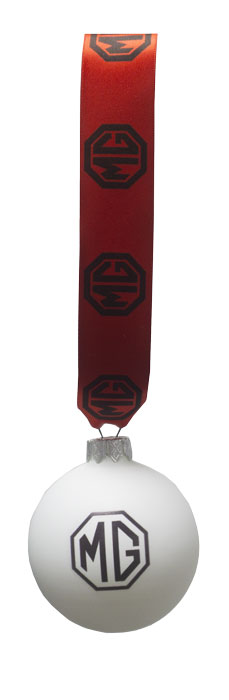 Christmas white glass bauble etched with the MG logo in a box. 175 x 70 mm